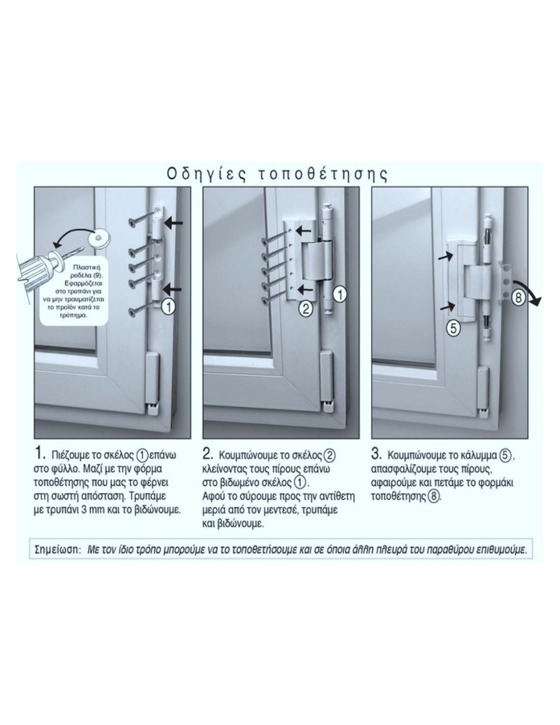 Αντιδιαρρηκτικό και για την πλευρά των μεντεσέδων για παράθυρα PVC και ξύλου με περιμετρικό μηχανισμό.