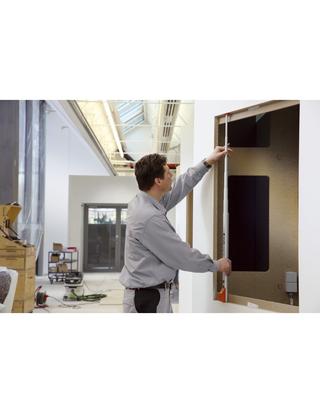 Τοποθετήστε το μέτρο στη θέση που θέλετε και τραβήξτε προς τα έξω την επέκτασή του και διαβάστε στην αναλογική οθόνη τις διαστάσεις που μόλις μετρήσατε! Το συγκεκριμένο τηλεσκοπικό μέτρο είναι εύκολο στο χειρισμό του, χάρη στις συμπαγείς διαστάσεις του , το μικρό βάρος του και τους στρόγγυλους τηλεσκοπικούς σωλήνες. Η οθόνη είναι προσαρμοσμένη έτσι ώστε να βρίσκεται στο ύψος των ματιών για να είναι βολική η ανάγνωση των διαστάσεων. Μια αμφίδρομη φούσκα(φυσαλίδα-αλφάδι) είναι ενσωματωμένη στο περίβλημα οθόνης για διευκόλυνση της λήψης οριζόντιας και κατακόρυφης μέτρησης.