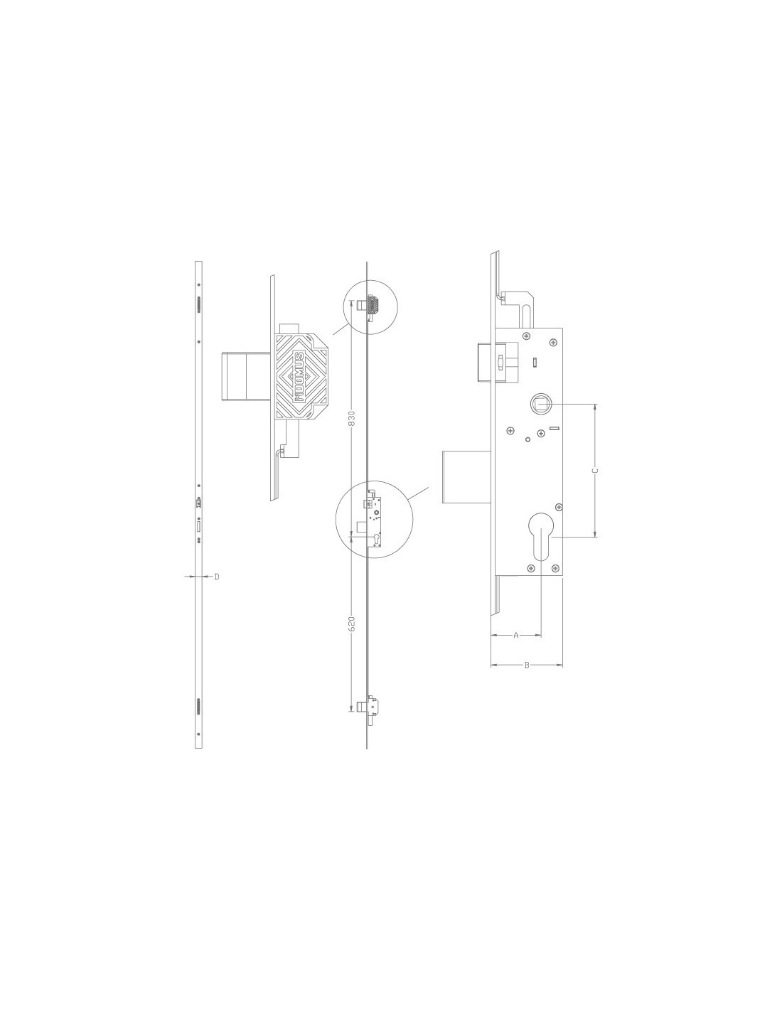 Αποτελείται από την κεντρική κλειδαριά και δυο μικρότερες, μία στο πάνω και μία στο κάτω μέρος της κλειδαριάς.