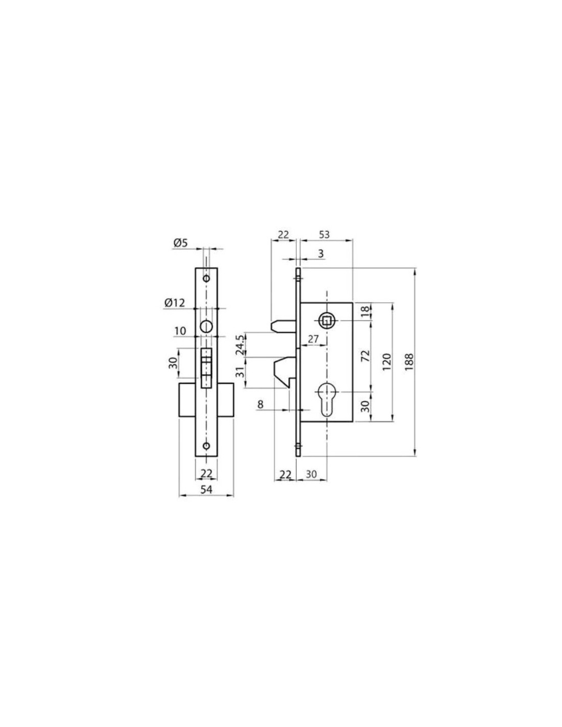 Κλειδαριά γάντζου για συρόμενες πόρτες με κύλινδρο και 3 κλειδιά