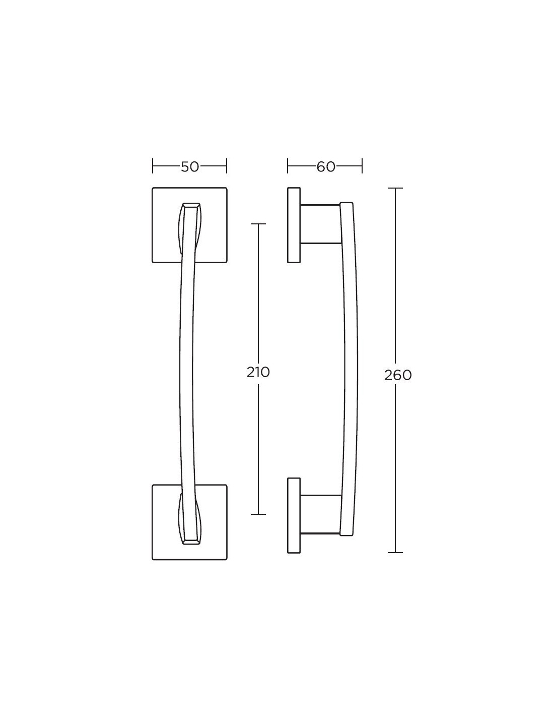 Διακοσμητική λαβή πόρτας σειρά 925 με ολικό μήκος 260 mm και απόσταση κέντρου- βίδας 210 mm.