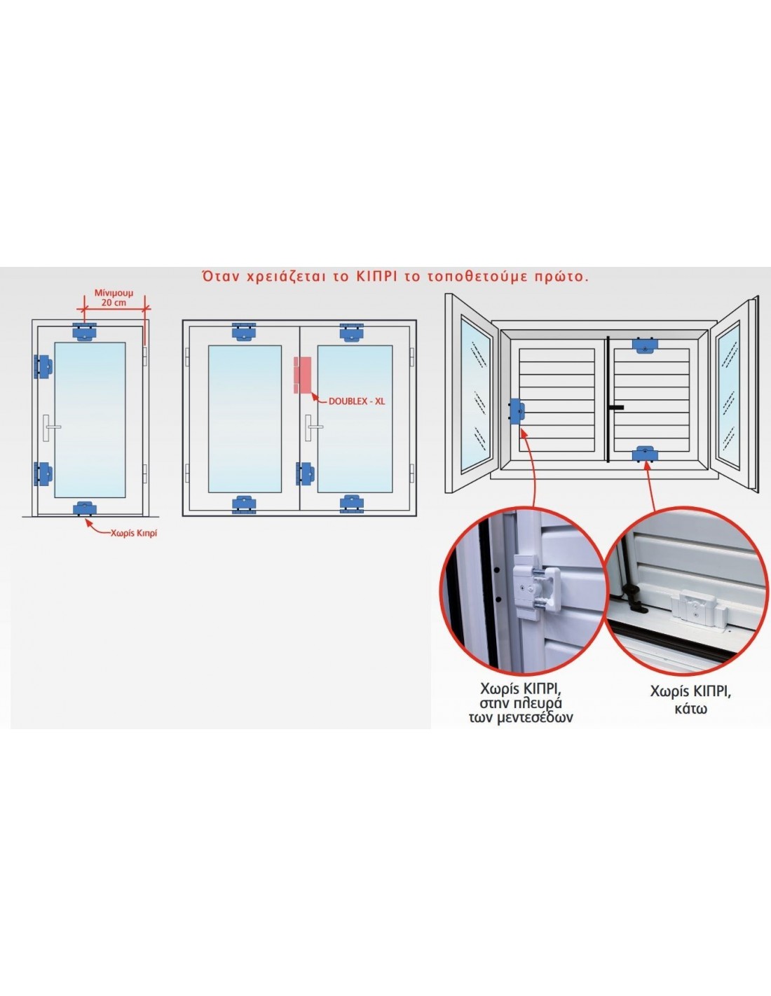 Διπλός σύρτης ασφαλείας για ανοιγόμενες πόρτες και παράθυρα