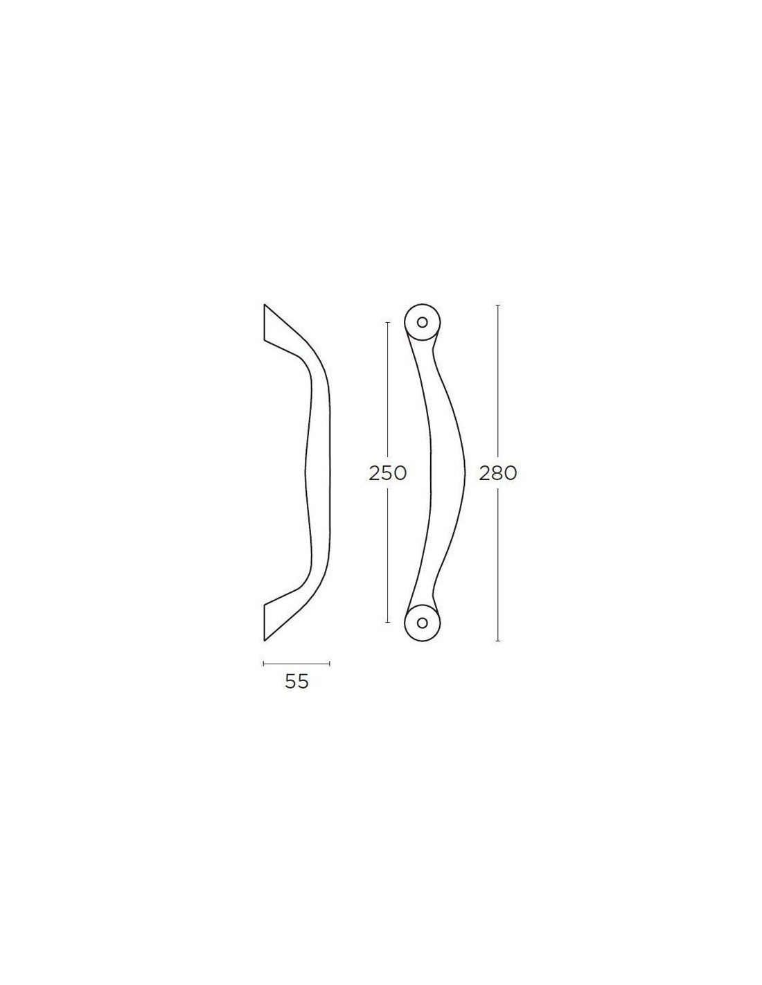 Decorative door handle series 627 with an overall length of 280 mm and screw center distance 250 mm.