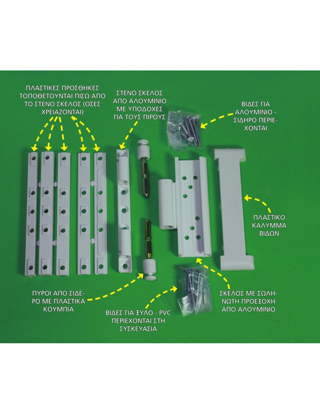 New product missing from the market . It consists of two reinforced aluminum profile fitted with five screws each, one in each place we want to snap . ( eg frame - sheet) . When insure fasten with two rods one from above and one from below , so that the resistance of the screw to be shared at all . Thus we achieve the maximum burglary insurance in any type of opening door or window: one-leaf , two-leaf , aluminum , iron , wood or PVC.