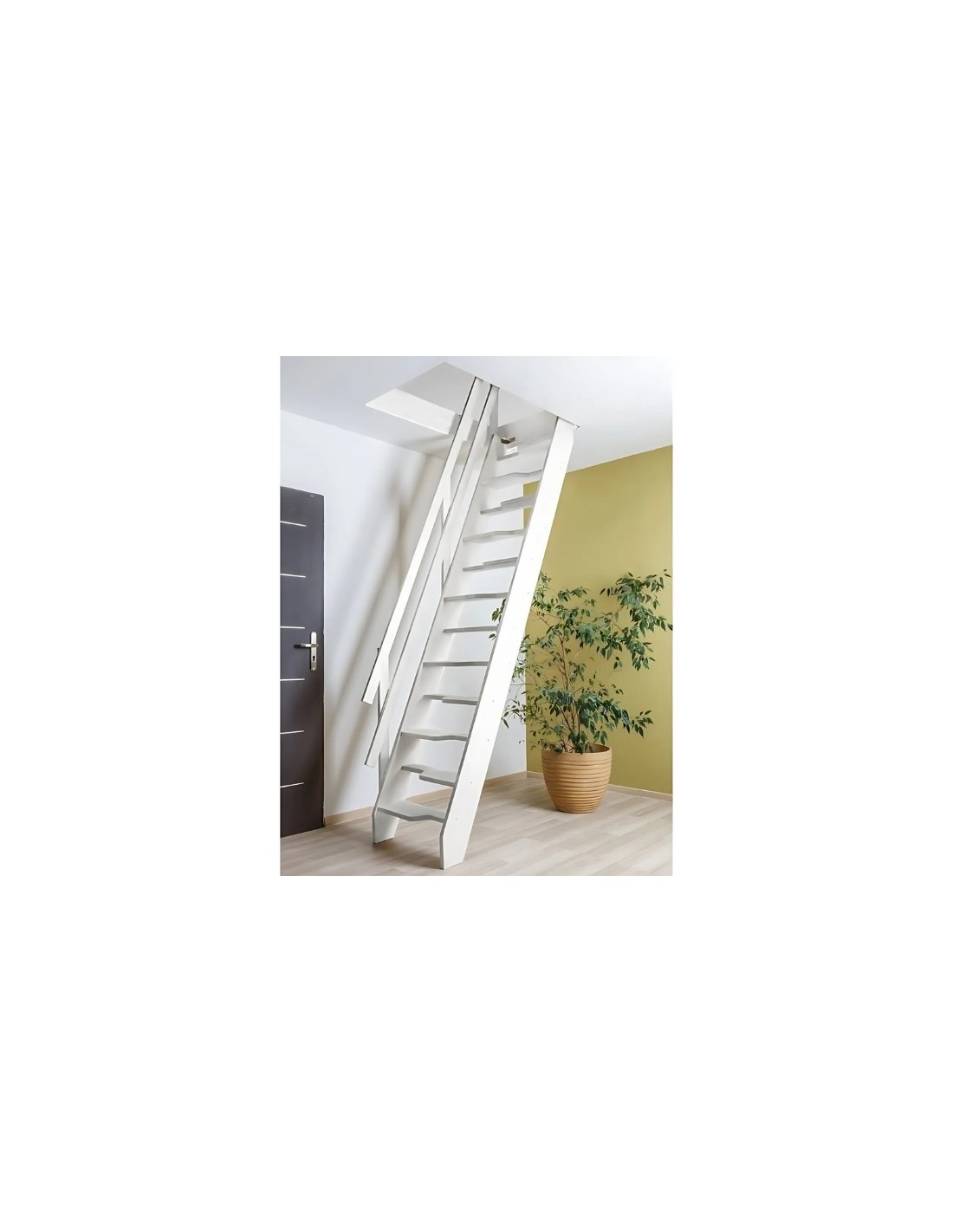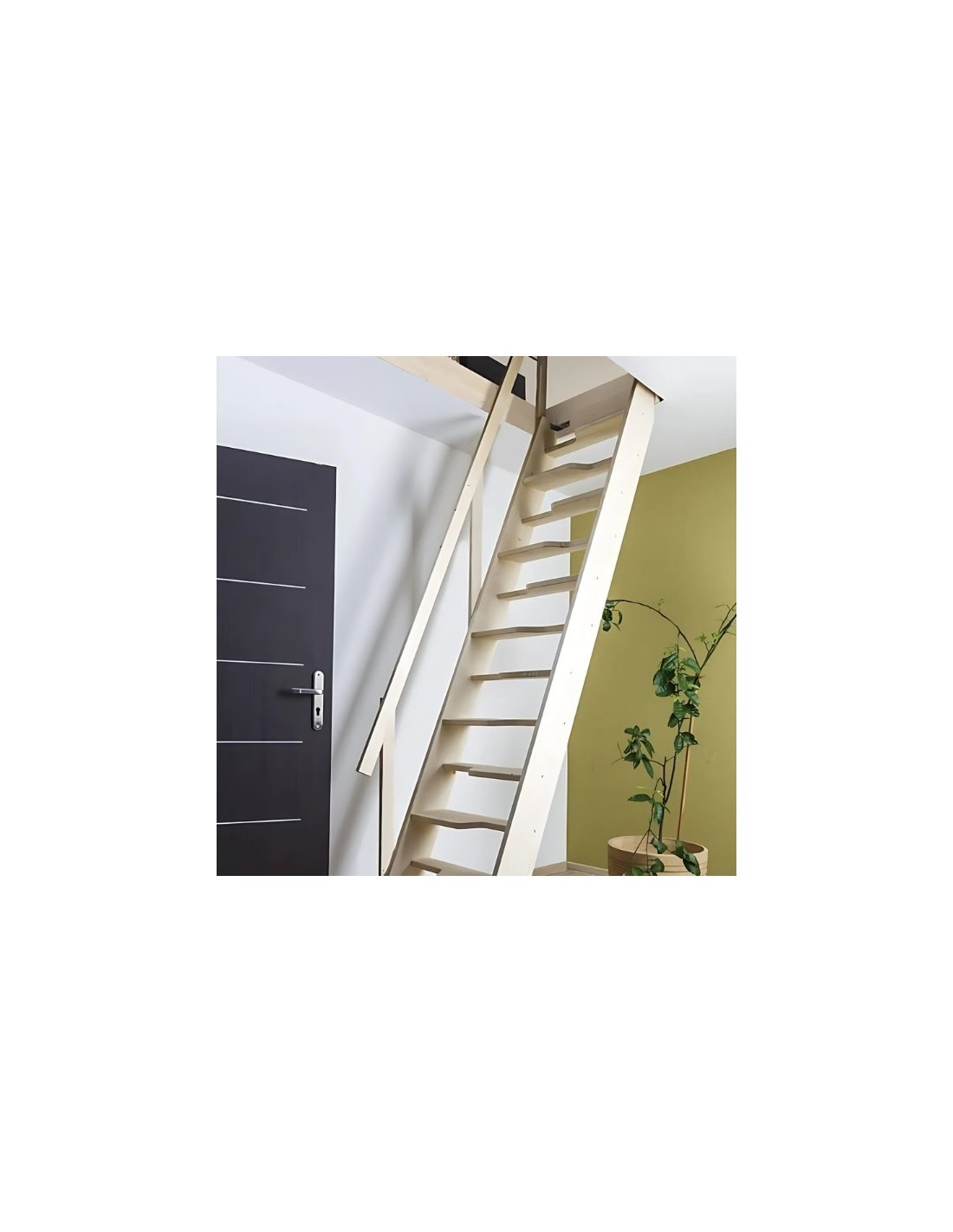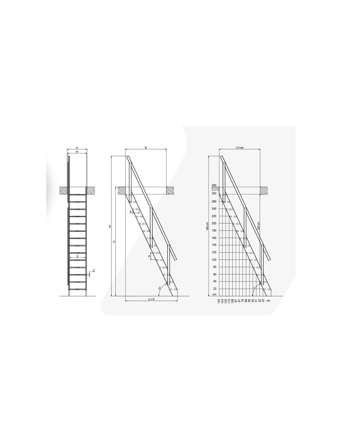 In the standard version, the ladder comes without a railing but it is possible to buy the additional MXH railing which can be placed to the left or right of the ladder (not included in the price). Maximum floor height for installation 300cm. The slope of the ladder is 65O and the permissible load weight is up to 160 kg. The ladder is delivered in natural wood, ready for painting Easy adjustment to the floor height Includes mounting kit Easy DIY installation Free opening space C = 143 cm * The railing is optional and the charge is extra.