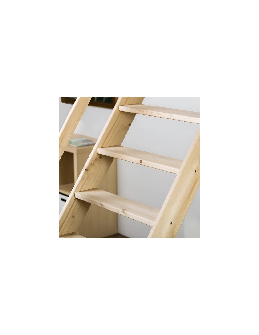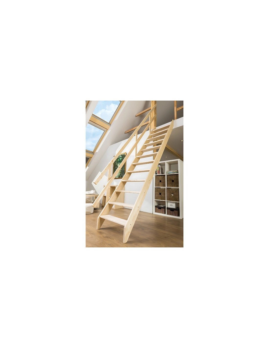 The staircase can be used with great success as a durable solution in private homes, summer houses or apartments as well as in temporary solutions where secure access is required. Maximum floor height for installation 290cm. The inclination of the ladder is 55O and the permissible load weight up to 160 kg. The ladder can be additionally installed with a railing mounted on the right or left (not included in the price). The ladder is delivered in natural wood, ready for painting. Easy adjustment to the floor height. Includes mounting kit. Easy DIY installation Free opening space C = 193 * The railing is optional and the charge is extra.