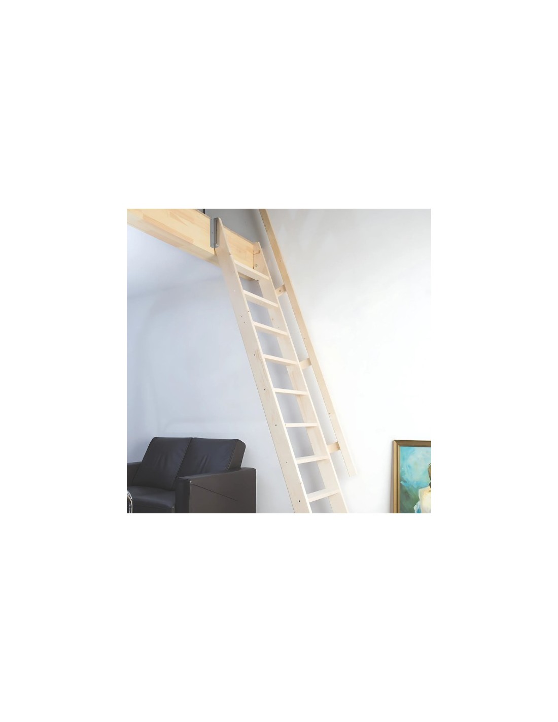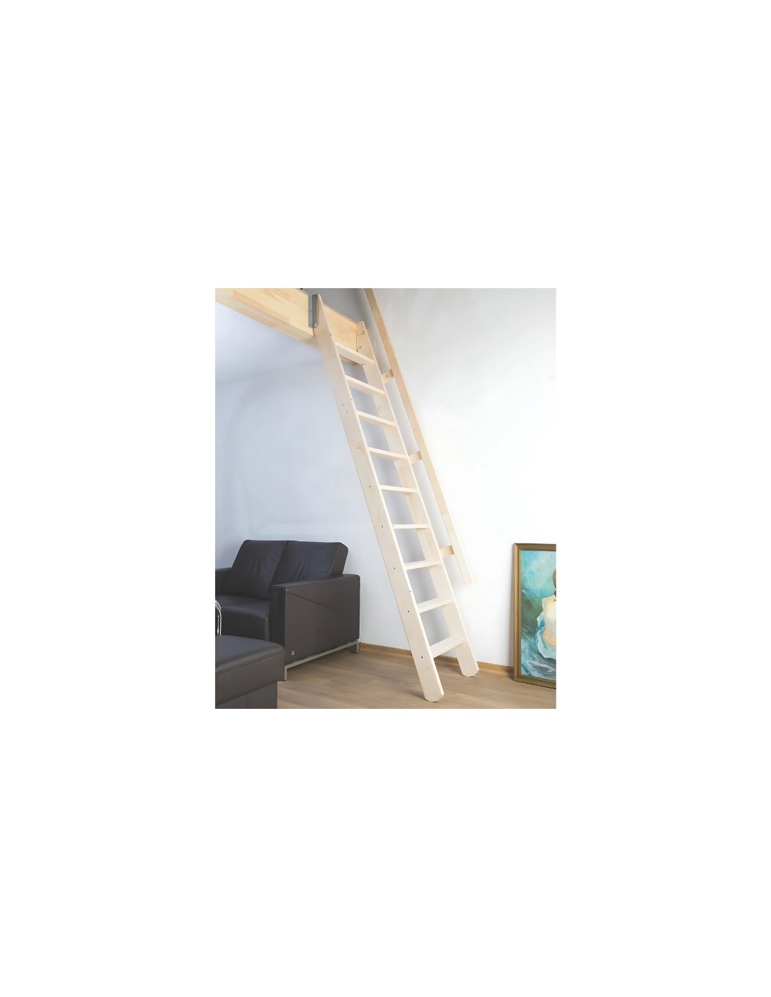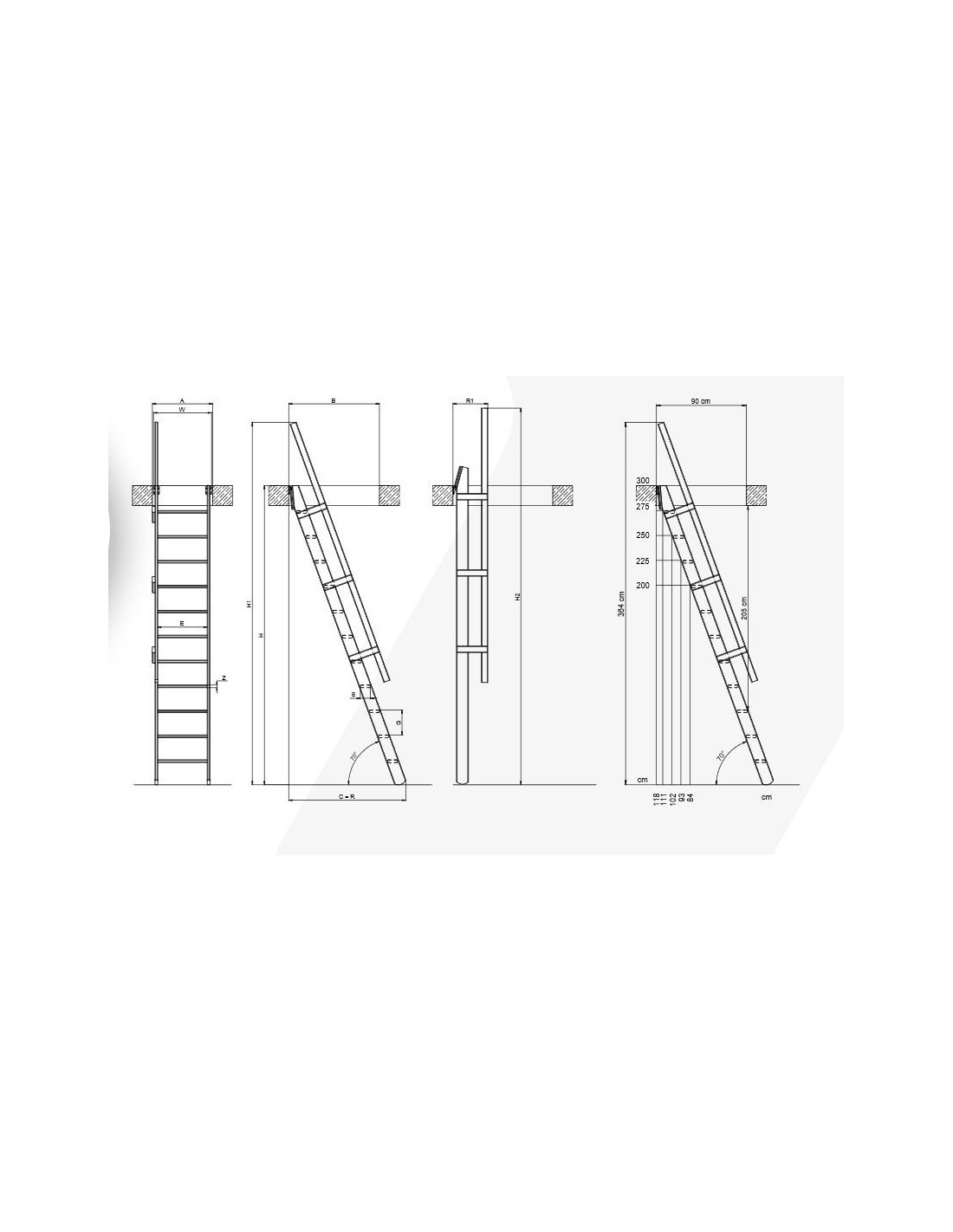 For extra safety and comfort, the ladder is equipped with a handrail that can be placed on the left or right side. The staircase can be used with great success as a durable solution in private homes, summer houses or apartments as well as in temporary solutions where secure access to narrow spaces is required. Maximum floor height for installation 290cm. The inclination of the ladder is 70 degrees and the permissible load weight up to 160 kg. The ladder is delivered in natural wood, ready for painting. Easy adjustment to the floor height. Includes mounting kit. Easy DIY installation Free opening space C = 118 cm * The railing is optional and the charge is extra.