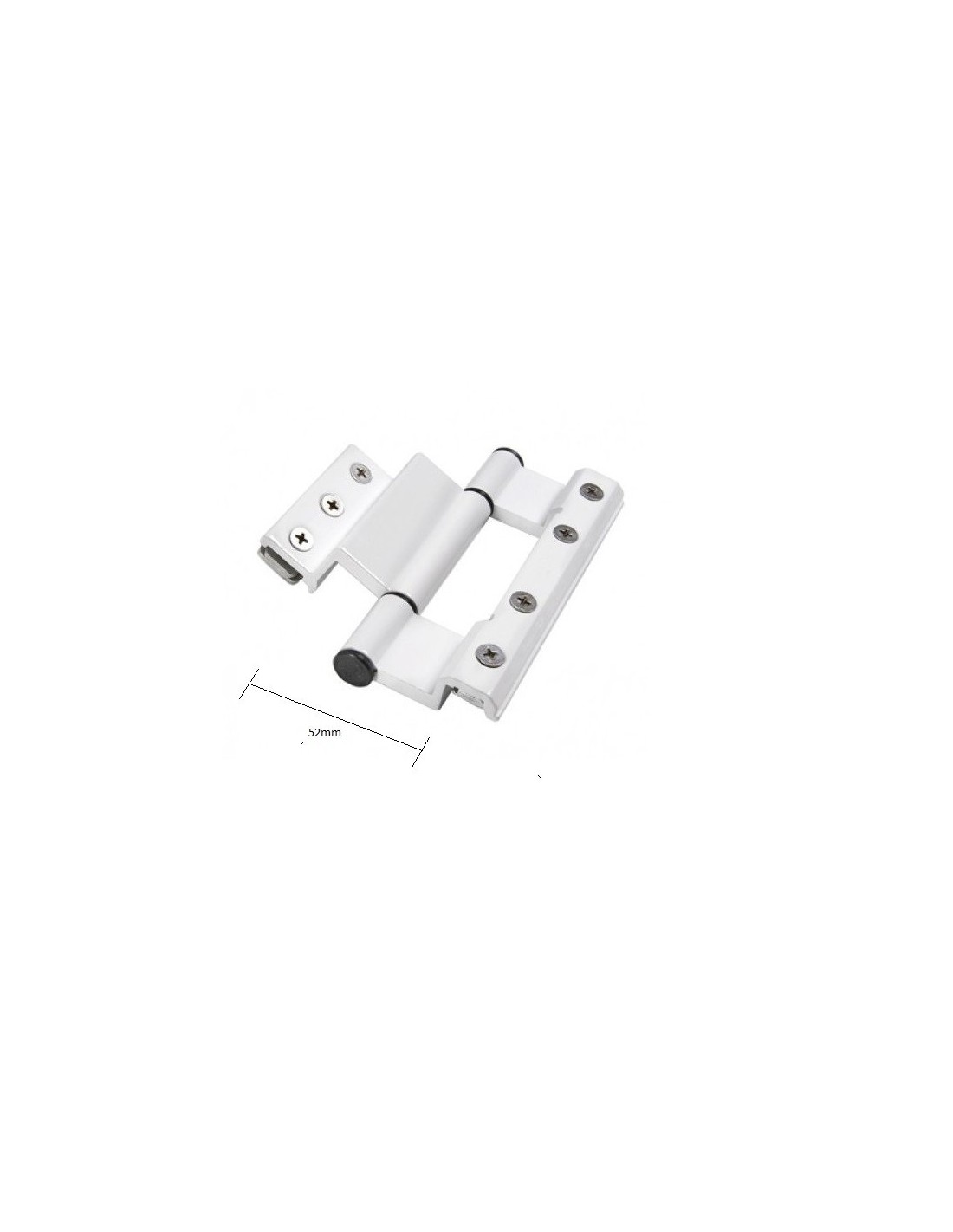 Hinge unique strength and excellent build quality for shutters that follow the standards of the camera europea (ie Alumil, Almaco, elvial, alousystem) with a total outreach of the blind 52mm.Made by aluminum and electrostatically painted in white or black.