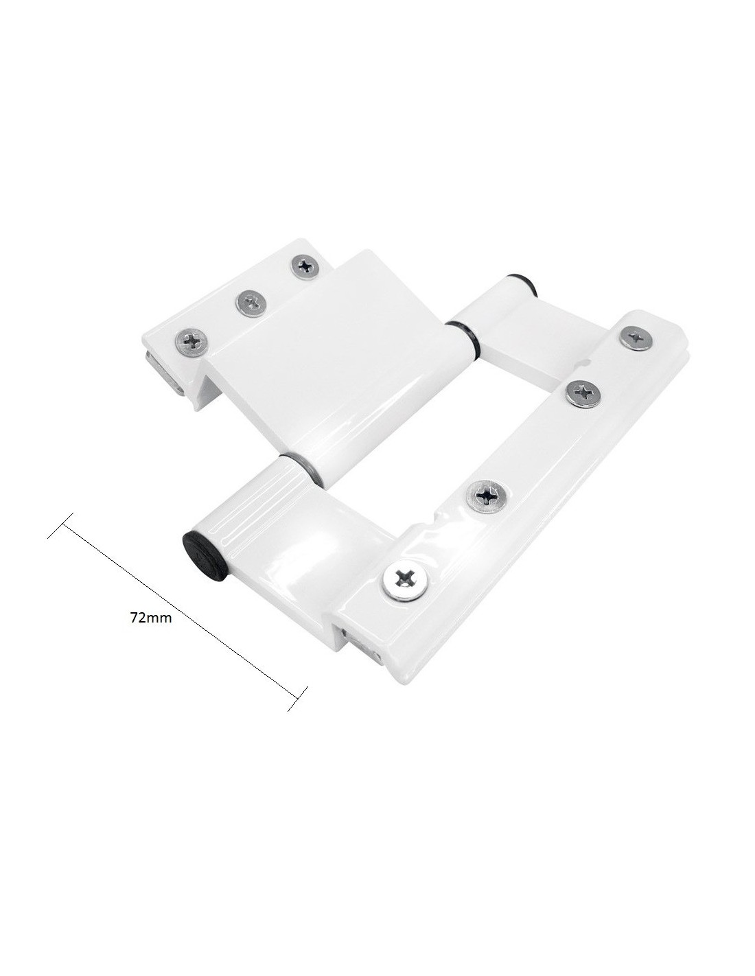 Hinge unique strength and excellent build quality for shutters that follow the standards of the camera europea (ie Alumil, Almaco, elvial, alousystem) with a total outreach of the blind 72mm.Made by aluminum and electrostatically painted in white or black.